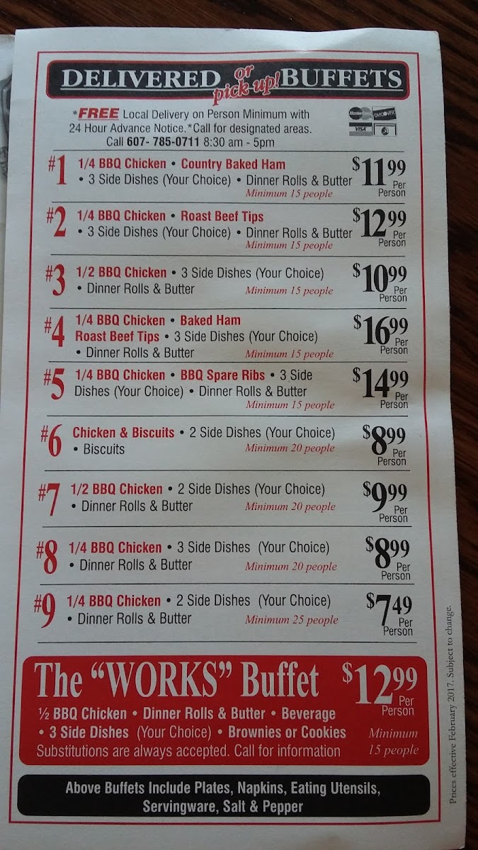 The menu also features indulgent individual dinners to go, including BBQ Ribs Platter for $19.99 and succulent Fried Shrimp Dinner for $18.99. Don't forget to save room for their tempting desserts, like the classic Apple Pie starting at $3.79!